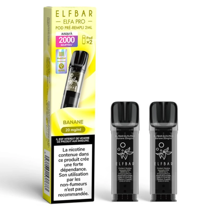 Les expressions elfa banana et elfa pods banane désignent la même version de capsule Elfa Pro avec arôme banane, utilisée avec la batterie Elfa.