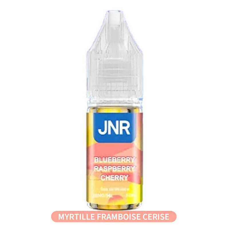 Le liquide jnr Blueberry Raspberry Cherry est un e-liquide en flacon de 10 ml, élaboré avec des sels de nicotine. Ce produit combine trois saveurs fruitées : myrtille, framboise et cerise.